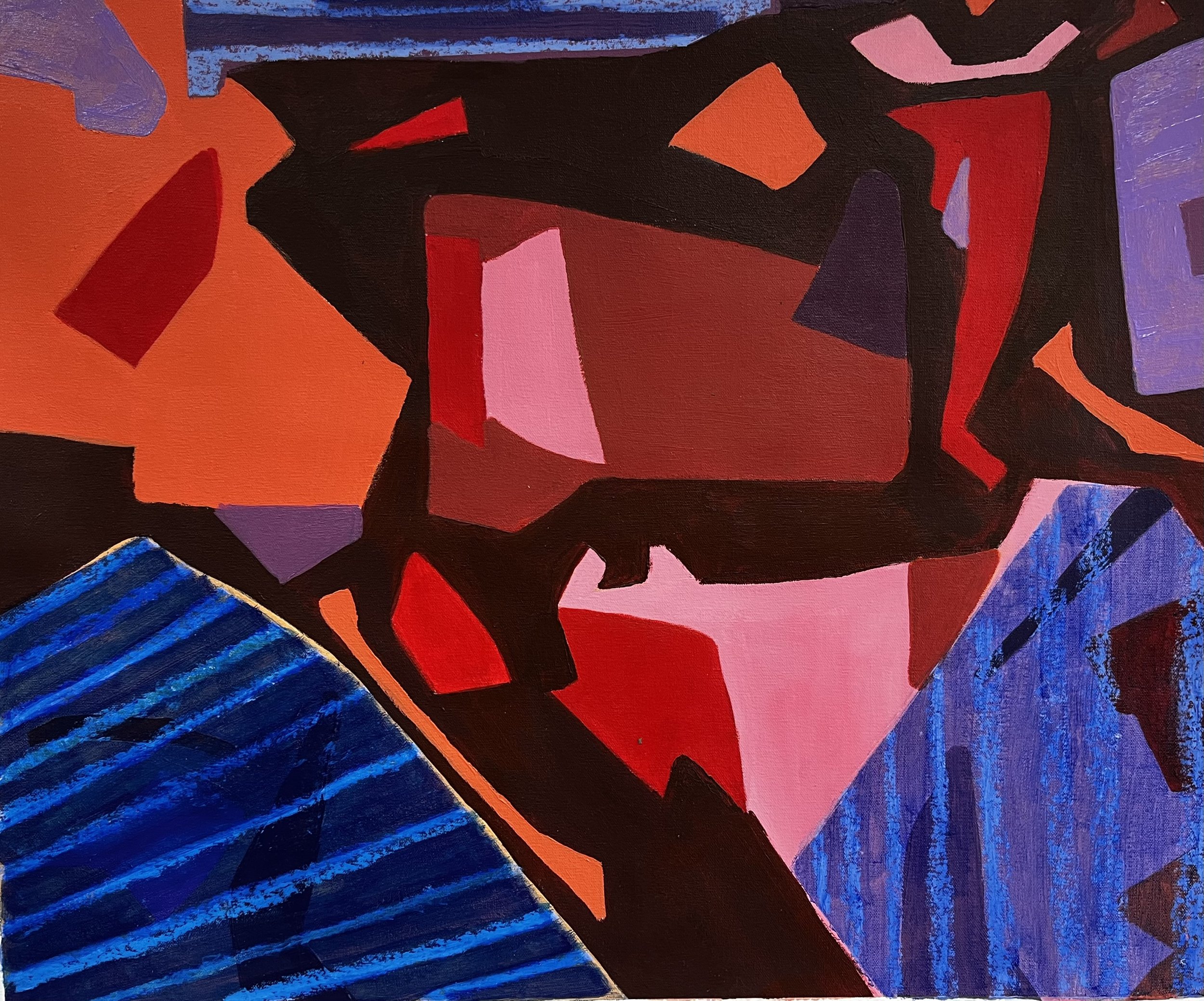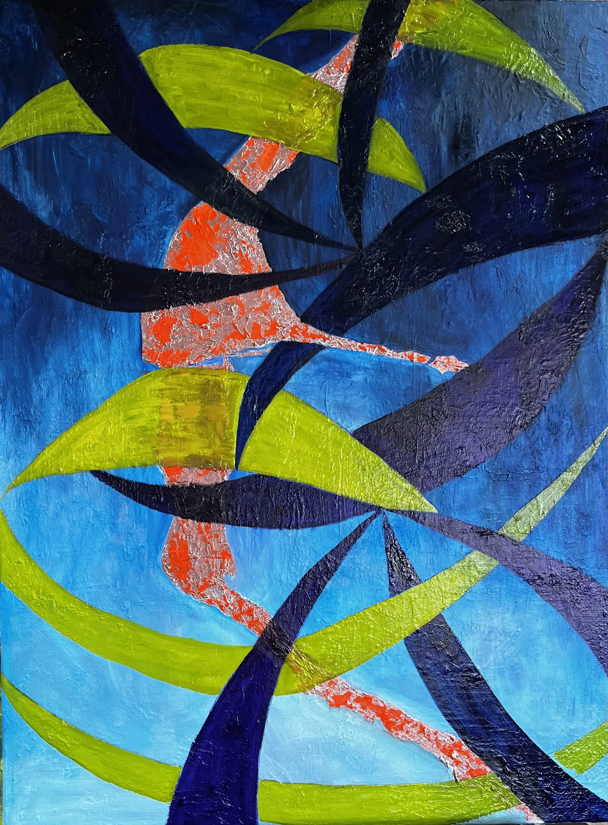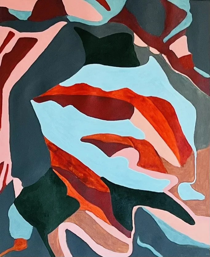 Organic shapes, lines and colours - arising partly from deconstructed observations from life, partly from the push and pull of materials used - are vital aspects of my work.